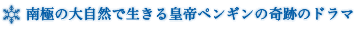 マイナス40℃の南極の大自然に生きる皇帝ペンギンの知られざる感動のドラマ。