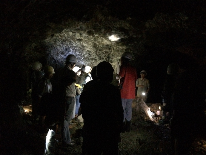 これから地下壕に入りますのでヘルメットが貸与されました。